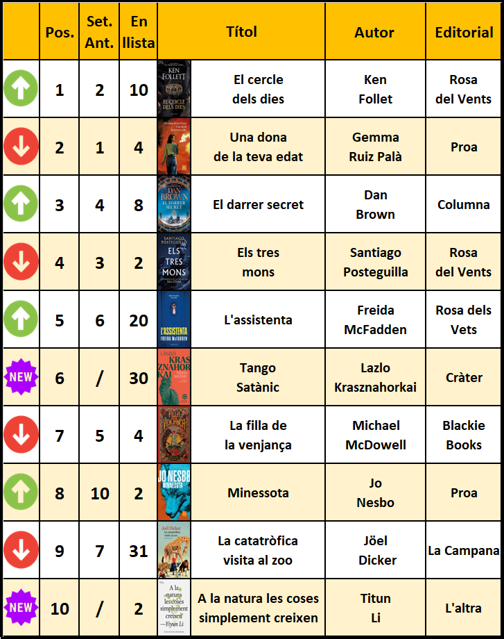 Descobreix si el teu llibre preferit continua al podi 🥇 o si hi ha nous tĂtols que han entrat amb força al top 10!