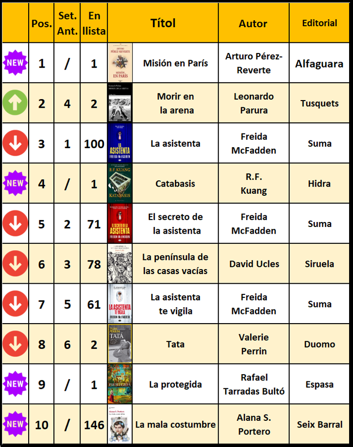 📚Las 10 novelas más vendidas de la semana (1–7 septiembre 2025)