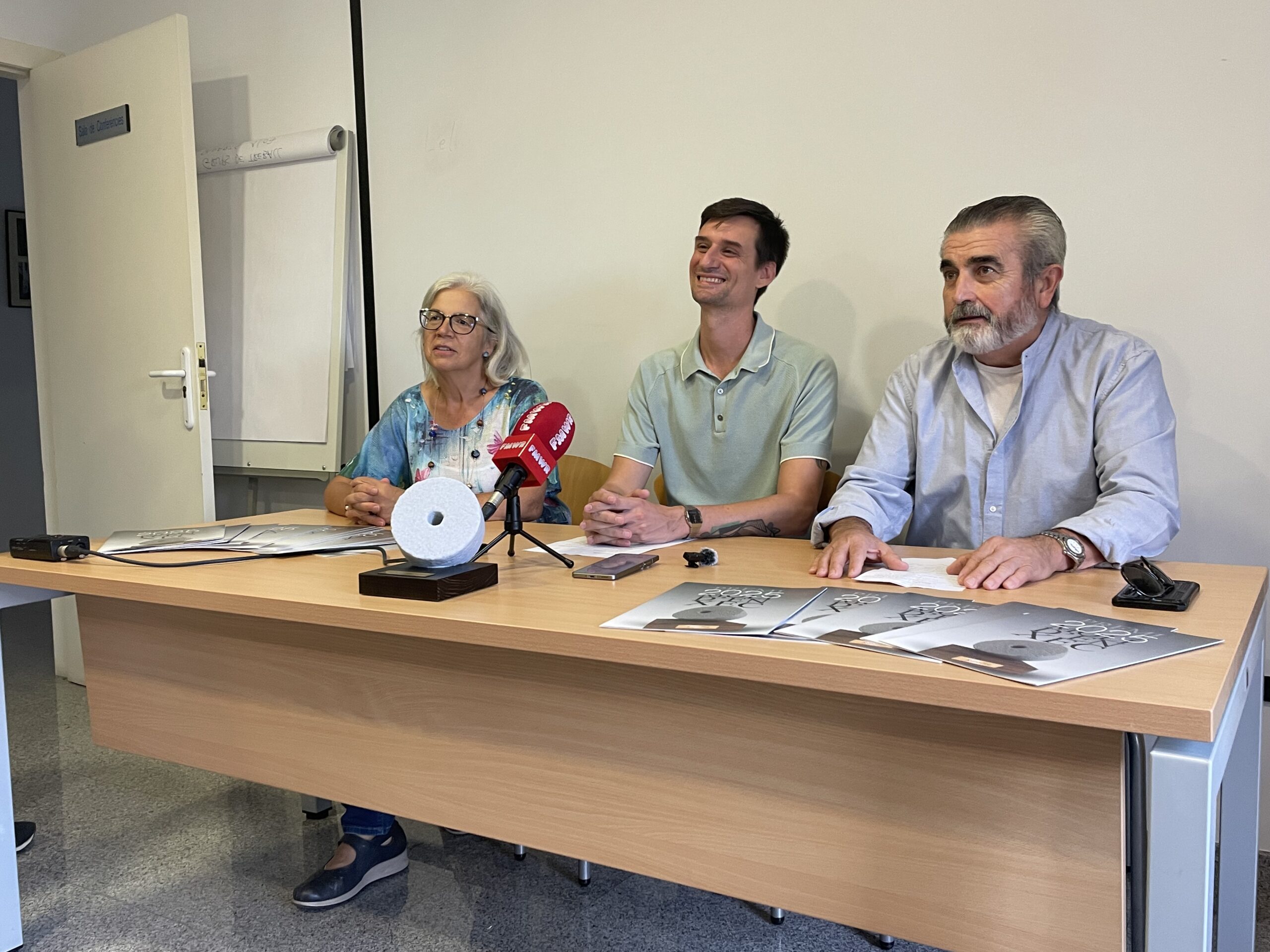 Foto dels organitzadors amb el premi que s’atorgarà als guanyadors